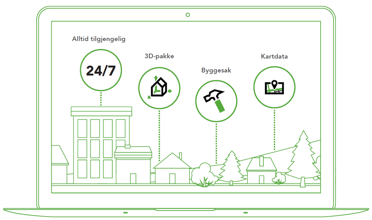 e-Torg gjer ting enklare og sparer deg for tid til innhenting av eigedoms- og kartdata frå kommunen. e-Torg er tilgjengeleg på alle plattformer, og er ope 24/7, og har alltid dei mest oppdaterte data.